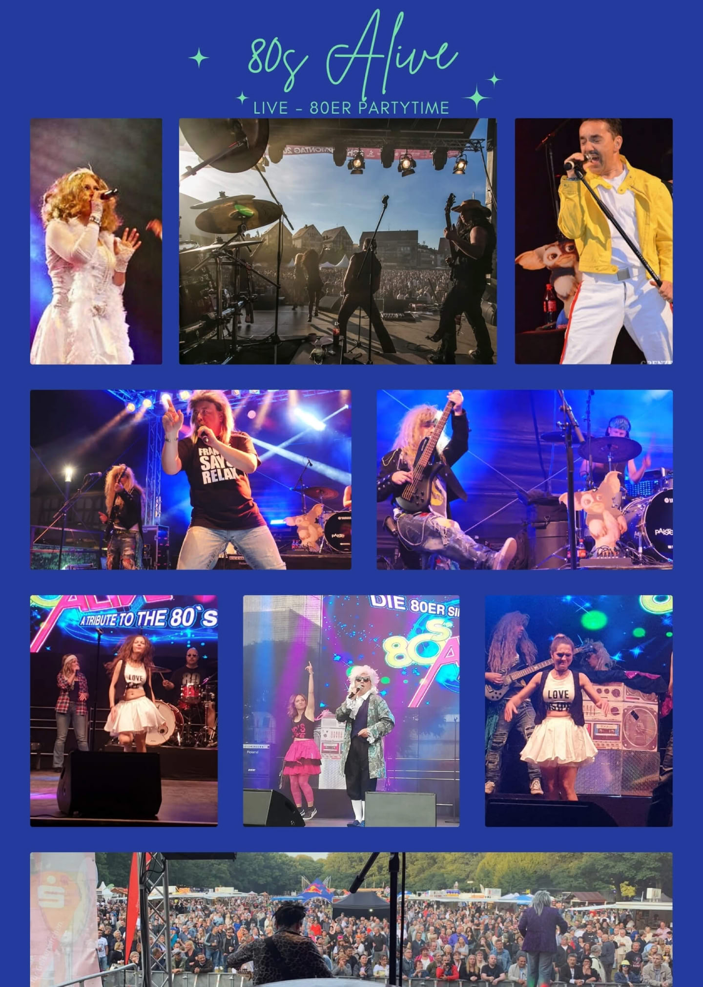 Live-Entertainment für Stadtfeste, Retro-Partyband für Events, Nostalgische 80er Hits live erleben, Professionelle Live-Unterhaltung mit Tänzern,"Buchen Sie die beste 80er Tribute Band für Ihr Event! Erleben Sie die Hits von Madonna, Queen und mehr live!"